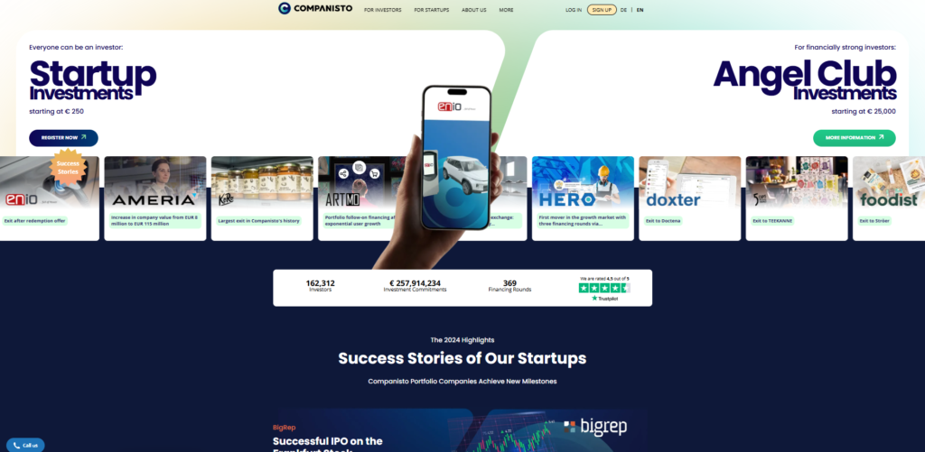 | Companisto | ★★★★☆ | Equity and debt-based investments | €206M | Seed, Growth | Read review |