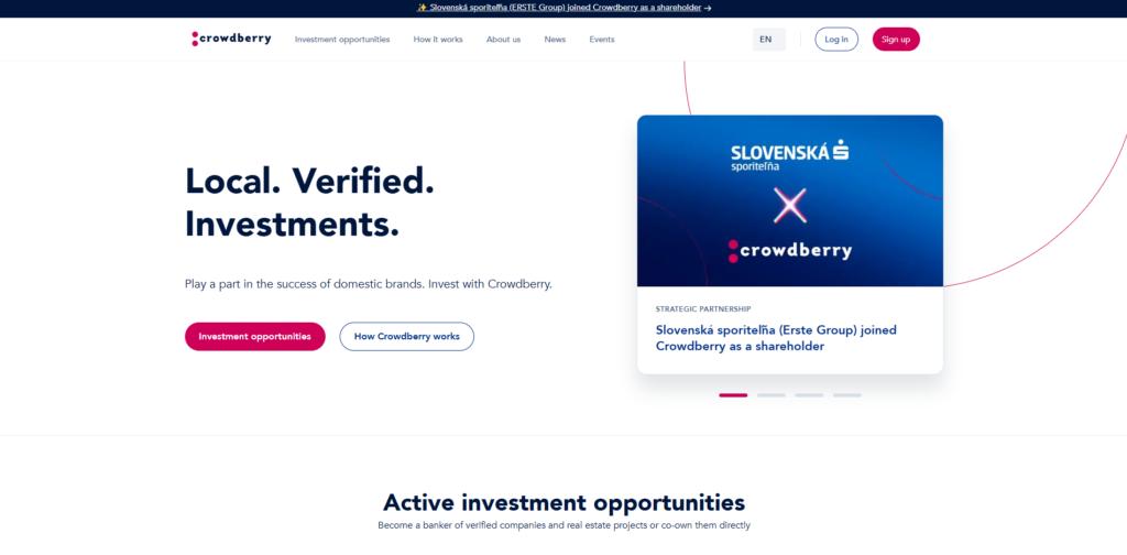 Crowdberry is a licensed investment platform based in Slovakia that enables private investors to directly invest in specific companies and real estate projects, primarily within the Czech Republic and Slovakia. Established in 2015, the platform has facilitated over €65 million in investments across more than 40 companies, contributing to the growth of local businesses and the domestic economy.